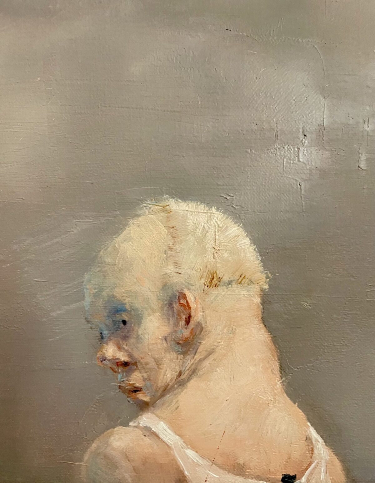 Michael Kvium – “Think Faster”, 2003 Olie på lærred Mål: 23×54 cm Pris: 90.000,-